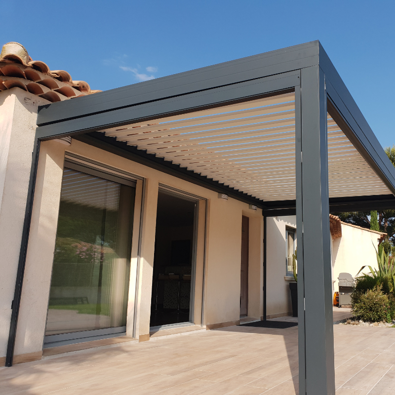 Avec sa possibilité de fermer les lames durant les fortes chaleur ou au contraire lors des temps pluvieux, profitez de votre extérieurs toute l’année.